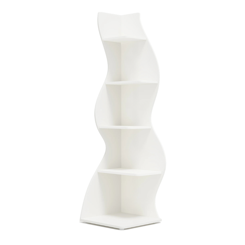 Make the most of unused space with this sleek 5 tier corner shelving unit designed to bring structure and style to compact areas. Its slim footprint fits neatly into tight angles, transforming overlooked corners into purposeful storage zones. Crafted with durable panels and a smooth painted finish, this functional corner bookshelf supports books, plants, and decorative accents without overwhelming your layout. Adjustable shelf spacing allows you to customize storage for taller items or compact décor. Whether placed in a bedroom, apartment, or workspace, this versatile design keeps essentials organized while maintaining a clean, minimalist appearance.Wall Corner Bookshelf Style