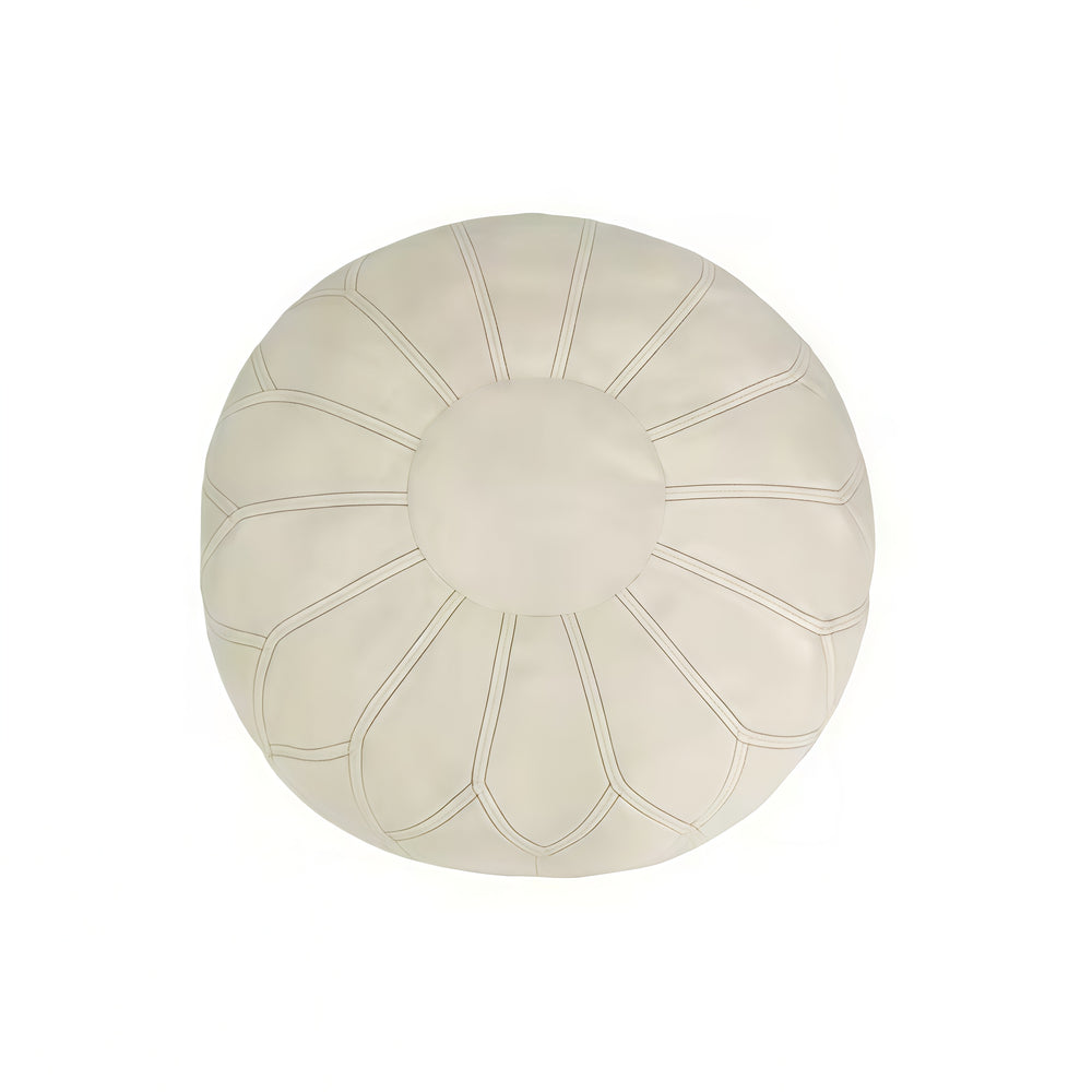 Its rounded silhouette complements modern interiors while still fitting eclectic décor themes, offering the visual charm of a modern leather pouf without the maintenance of natural hides. Versatile, practical, and visually striking, this pouf also works as a relaxed leather boho ottoman, elevating comfort while keeping your space organized and clutter-free.