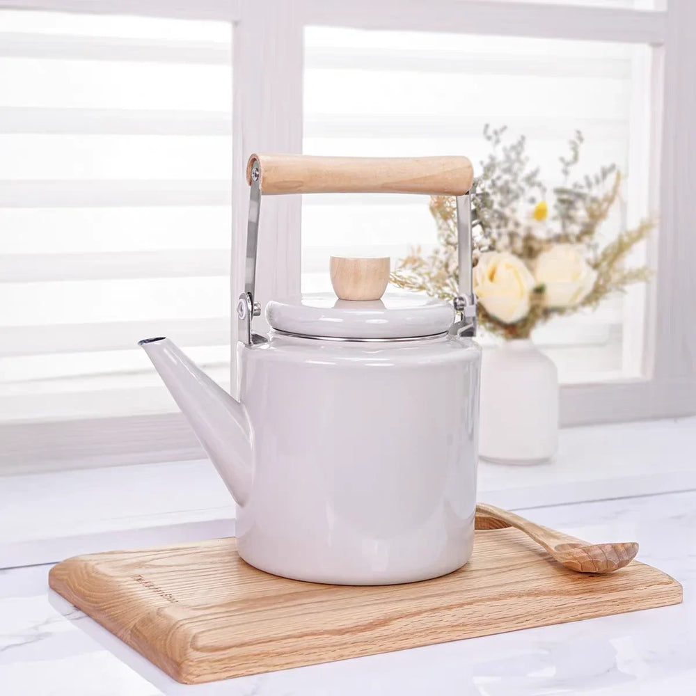 Craftsmanship meets technology with our Enamel Electric Kettle. Designed for both function and aesthetic appeal, this induction kettle pot addresses the nuances of modern brewing needs. From morning coffees to evening teas, its electric operation provides a swift, quiet boiling experience. Perfectly suited for busy kitchens, this enamel kettle does not compromise on style. Its pristine enamel coating is not just for visual elegance; it enhances durability, making the kettle resistant to daily wear and heat. Achieve ultimate precision in your cooking and brewing endeavors with this reliable, stylish, and efficient kitchen appliance.