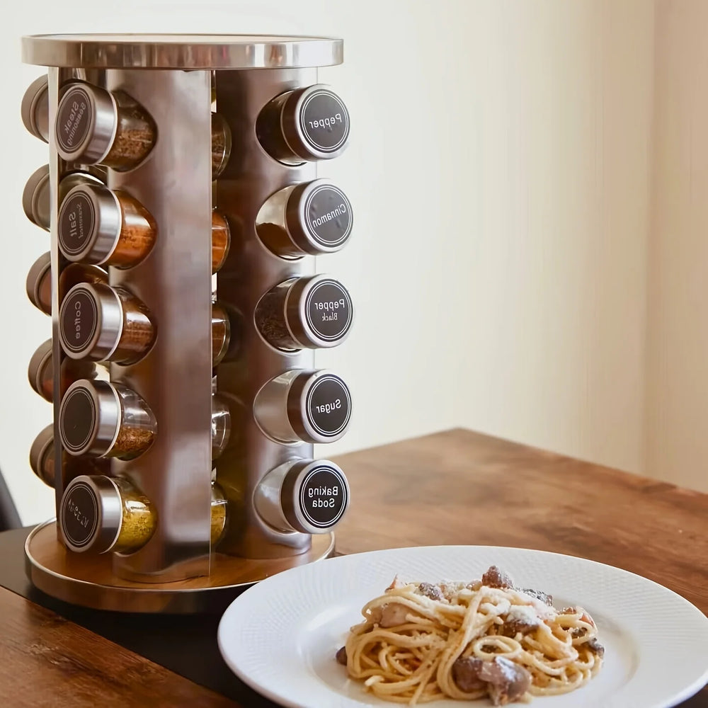 Organize your kitchen spices with this premium stainless steel spice rack, designed for effortless accessibility and a clutter-free countertop. The 20-jar rotating design ensures every spice is within easy reach, eliminating the frustration of searching through cabinets or drawers. Perfect for both home cooks and professional chefs, this countertop spice organizer brings efficiency and elegance to your cooking space.