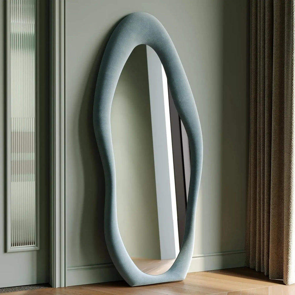 Irregular Wave Full-Length Wall Leaning Mirror, HD Silver-Backed Frame