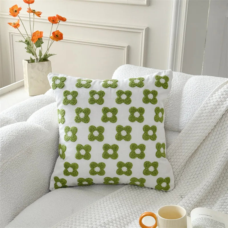 Inspired by retro craft aesthetics, this design evokes warmth and personality while remaining versatile for modern homes. The tactile surface pairs beautifully with botanical decorative pillows to create a cozy, curated arrangement on couches or reading nooks. Durable stitching maintains shape and texture even with regular use, ensuring long-lasting charm. Whether styled solo or layered with floral throw cushions, the cover enhances seating areas with gentle dimension and handcrafted character that elevates everyday lounging into a styled décor moment.