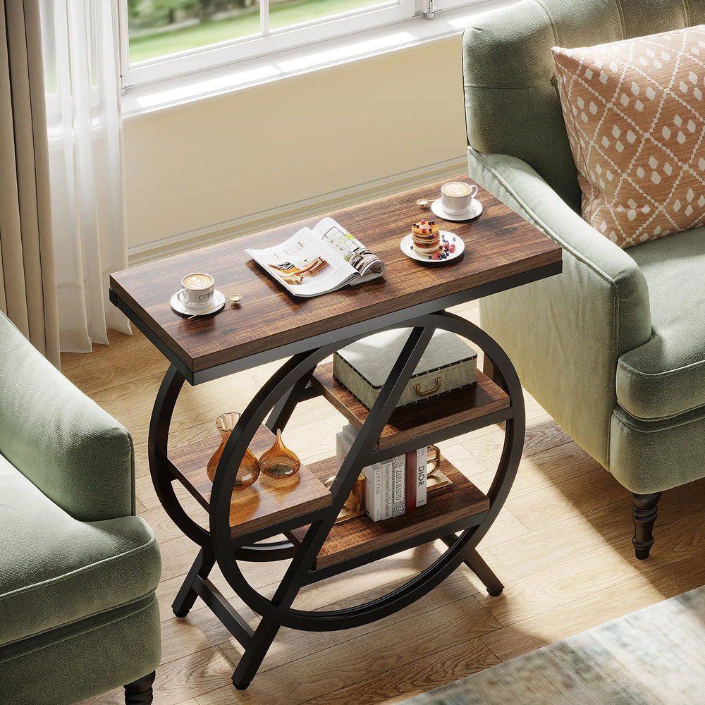 3 Tier Side Table – Tribesigns Rustic Storage with Geometric Metal Frame