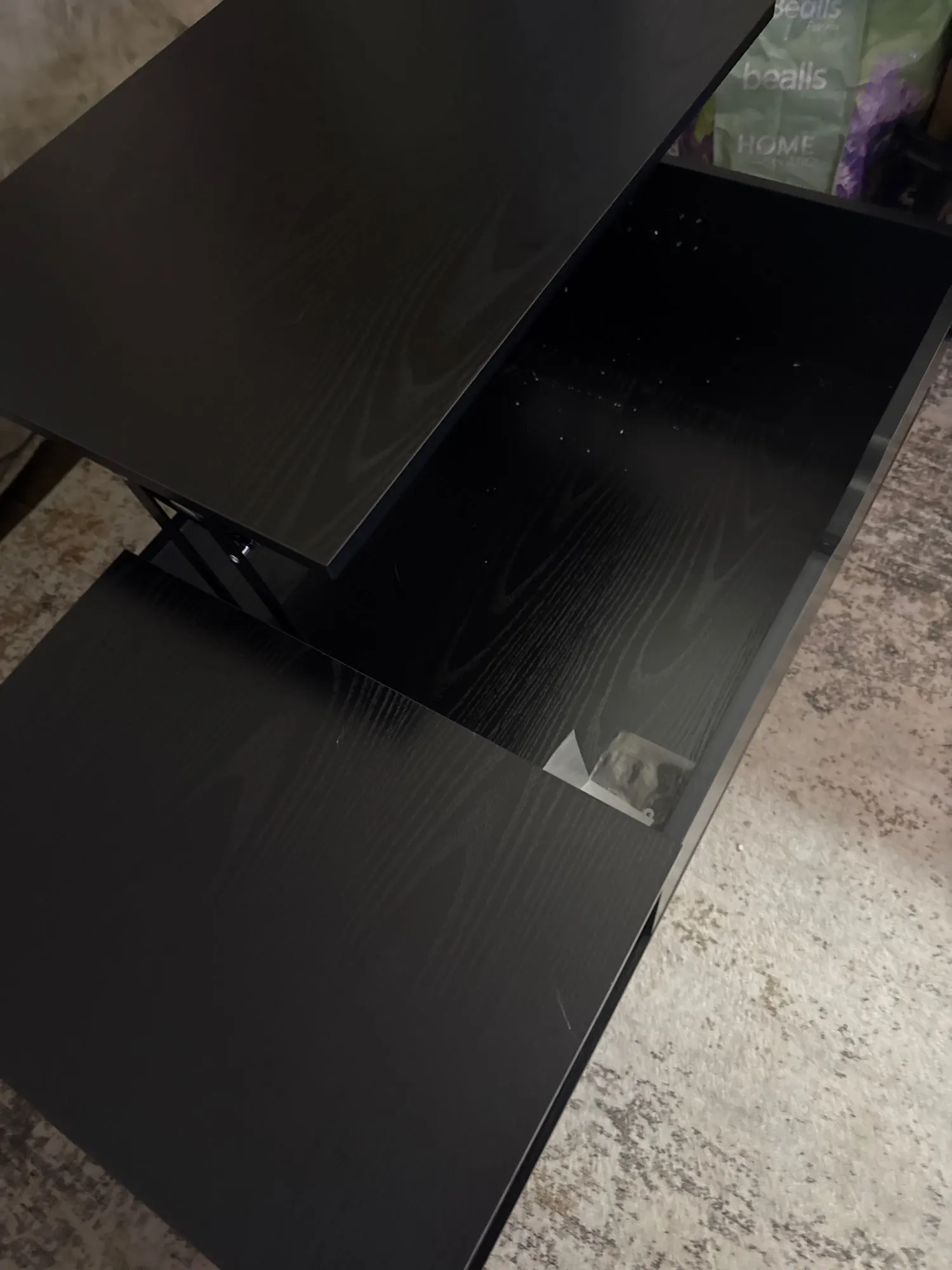 | Storage | Large hidden compartment under lift top for magazines, remotes, small laptops |