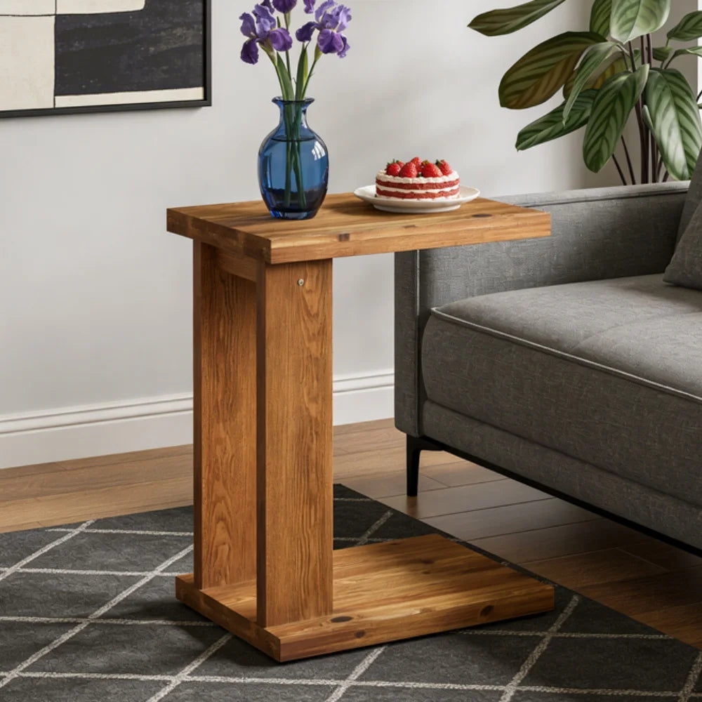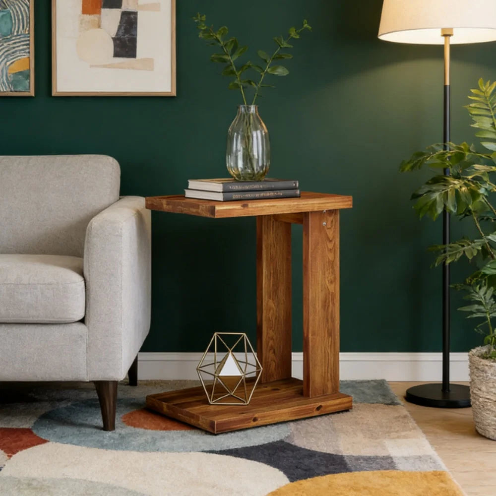 Blending warmth and practicality, this solid wood C-shaped piece delivers the charm of a rustic side table while sliding neatly under sofas or beds for easy access. The natural grain finish introduces organic texture that complements rustic living room tables and cozy interiors alike. Its sturdy structure supports everyday essentials like laptops, lamps, or snacks without wobbling. Designed for compact homes, it works beautifully as one of the most functional rustic end tables, offering a space-saving solution that enhances both convenience and decorative appeal in modern or farmhouse-inspired settings.
